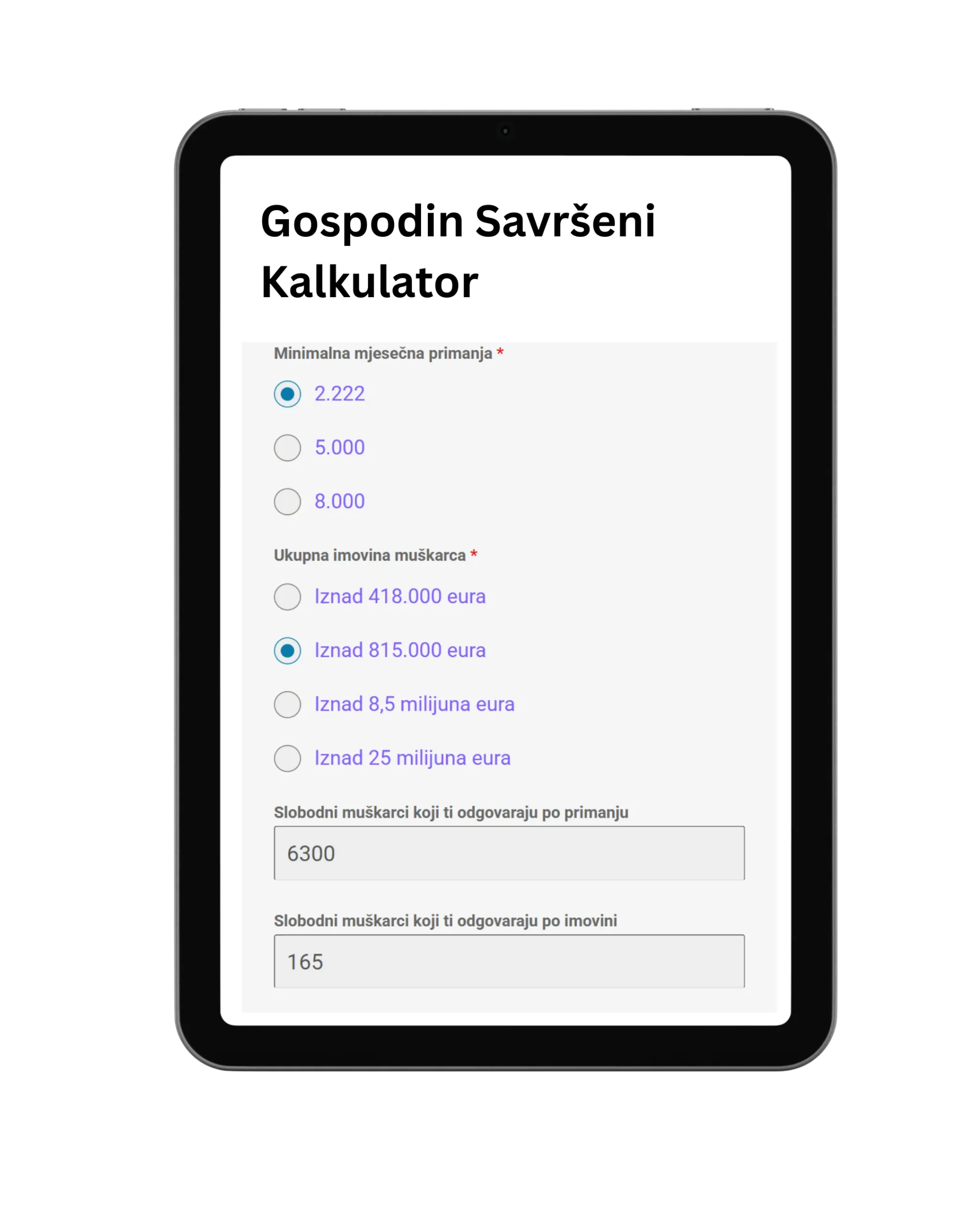 Visina, novac, obrazovanje, vjera, karakter, poroci, veličina “muškost”. Ti složiš profil, a kalkulator pokaže koliki je broj takvih muškaraca u Hrvatskoj.